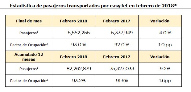 Estaísticas de pasajeros febrero 2018